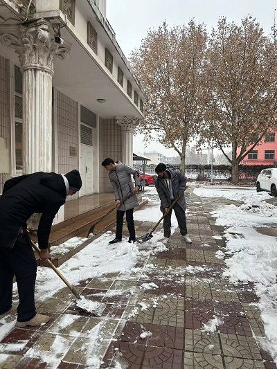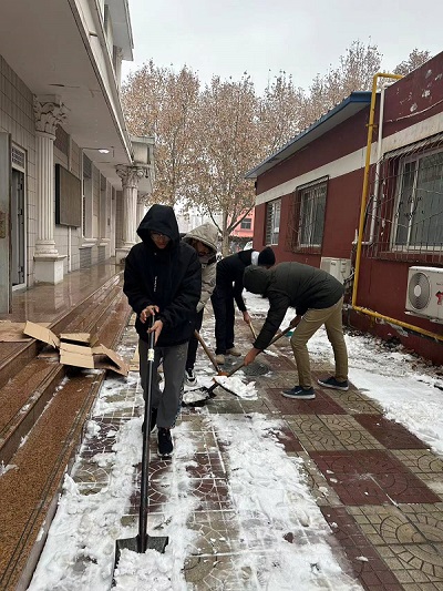 为消除雪后道路湿滑造成的出行不便,减轻积雪带来的安全隐患,学院部分巴基斯坦籍留学生主动为学院办公楼前区域清理积雪。同学们精神饱满、干劲十足,积极投身到志愿扫雪活动当中,经过大家的团结协作,使原本湿滑难行的道路变得干净畅通。