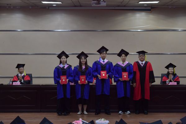 在热烈的掌声中,学院副院长王丽霞介绍了毕业生情况,宣布了优秀毕业生名单,宣读了授予学位的决定,并鼓励同学们要勇于追求梦想,不断挑战自我,成为新时代的优秀青年。随后,副校长申世刚和院长闫屹为中外毕业生举行拨穗正冠仪式并授予学位证书。