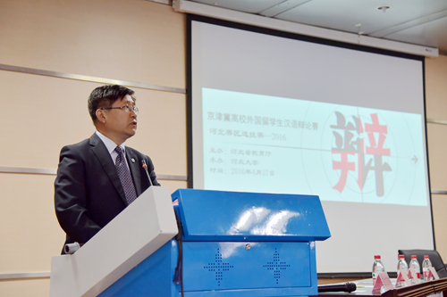 4月27日,2016年京津冀高校外国留学生汉语辩论赛河北赛区选拔赛在bat365中文官方网站举行。杨学新副校长出席开幕式并致辞。此次比赛由河北省教育厅主办,bat365中文官方网站承办,旨在促进中华优秀传统文化传播,展示河北省来华留学教育成果,加强京津冀高校外国留学生教育交流合作。