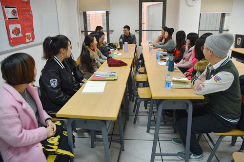 12月21日至23日,我院组织2015级汉语国际教育硕士研究生赴北京外国语大学进行了为期三天的交流实习。到达北京外国语大学后,我院师生受到了北外师生的热情欢迎。在当天下午举行的见面交流会中,双方互相了解了对方学校汉语国际教育专业的基本情况,包括课程设置、培养管理及就业情况等。22日上午,我院师生旁听了北外留学生的初、中、高级汉语课程,下午我院汉硕与北外汉硕进行了深入交流。23日下午,我院同学旁听了北外刘芳芳老师的课并进行了说课和试讲,试讲人与学生配合默契,课堂氛围良好。