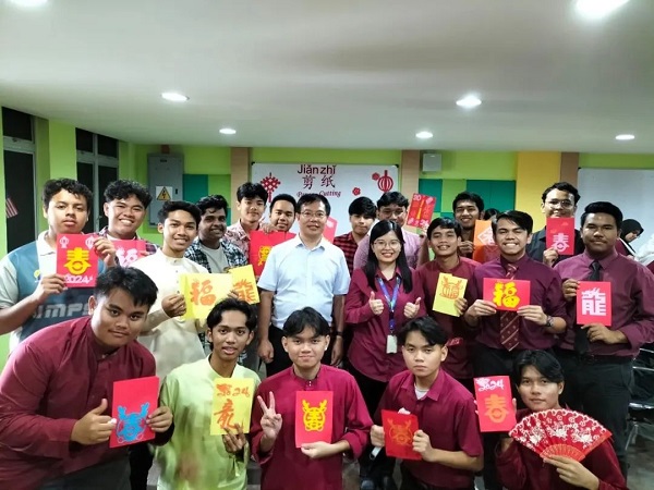 当地时间1月31日,bat365中文官方网站马来西亚彭亨阿苏丹阿都拉大学孔子学院举办了迎中国龙年春节文化活动。孔子学院中外方院长、国际中文教育志愿者、本土中文教师及彭亨孔院学员参加了此次活动。