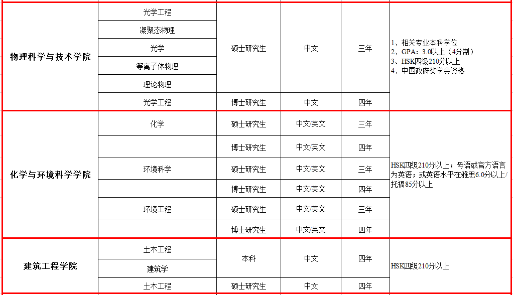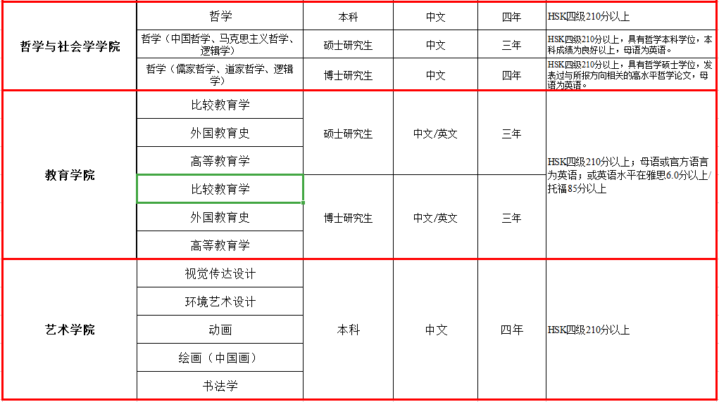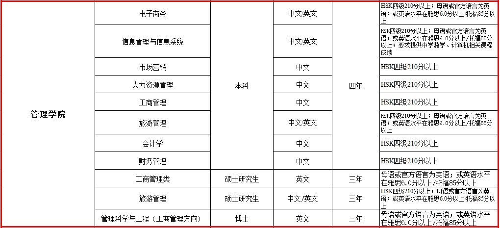 (五)中文授课项目:汉语水平应在HSK4级考试210分以上。