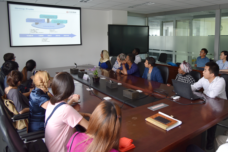 首先,立中集团管理部负责人向同学们介绍了企业发展历史以及目前规模。随后,同学们跟随负责人参观了车轮制作过程。同学们纷纷表示能够亲眼看到由金属材料制作成为成品轮毂的整个流程感到十分兴奋。立中集团负责人阐释了“比别人努力多一点,和别人合作多一点”的企业精神,践行了“通过不断地学习、创新,制造优良产品,满足市场需求,实现员工、客户、股东的共同利益”的企业价值观,令到访的孔子学院奖学金生非常钦佩。