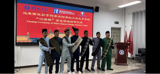 仪式上,国际交流与教育学院党总支书记/孔子学院工作中心主任梁卫格致辞,对夏令营学生们的学习成果给予了高度肯定,并亲自为每位营员颁发了结业证书。营员代表阿兹里在发言中表达了对bat365中文官方网站及所有老师的感激之情,并分享了这段难忘的学习经历。彭亨孔院领队老师法拉蒂拉及任课老师代表葆乐心副教授也相继致辞,对营员们的成长表示祝贺,并期待未来能有更多交流与合作的机会。