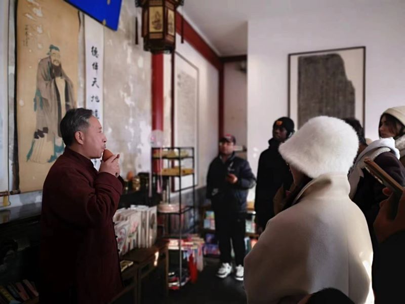 活动现场的经典戏曲《贵妃醉酒》《梨花颂》《状元媒》《打金砖》等选段精彩纷呈,展现了传统戏曲表演的优美艺术。留学生们身临其境,感受到了京剧所承载的深厚文化内涵。同时,他们还沉浸在莲池书院冬日的园林美景和传统美学之中,尽情享受着这场文化盛宴。除了观赏精彩表演,留学生们还有幸聆听了非物质文化传承人、埙音雅乐演奏家于连军大师的演奏,并听取了对传统礼乐文化的详细介绍。这一系列的体验不仅让留学生们感受到了中国传统文化的魅力,也增进了他们对中国戏曲艺术的理解和欣赏。