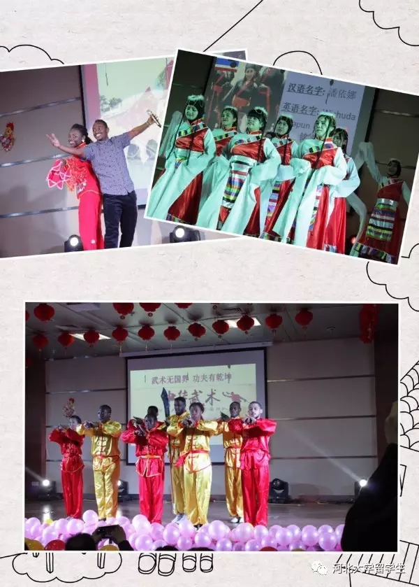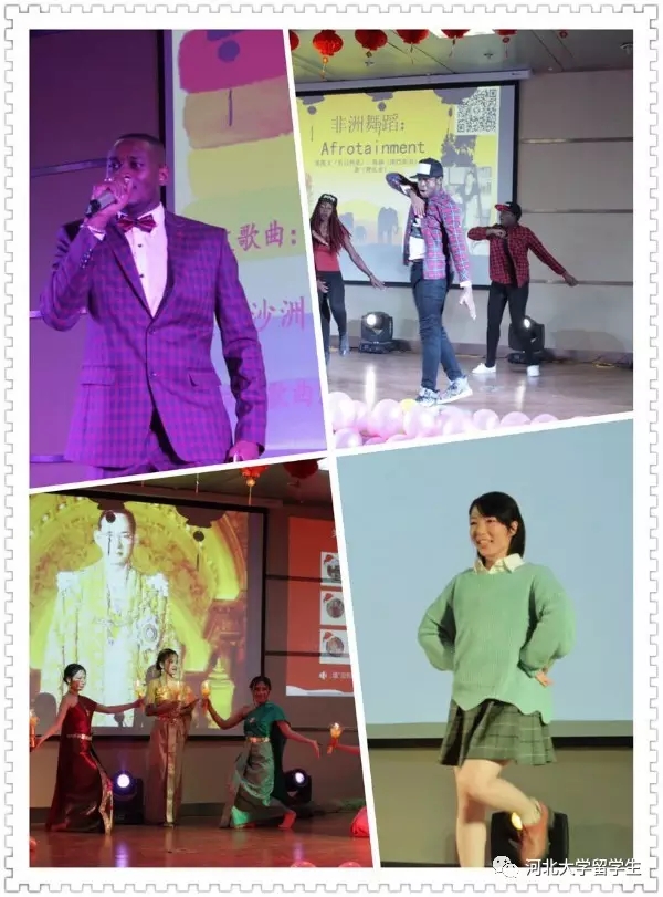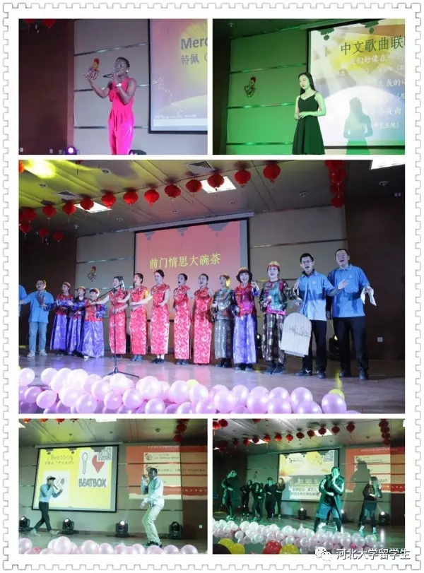 第一个节目是由留学生舞蹈队带来的藏族舞蹈 《吉祥谣》,这个曾经助演“中国-东盟文化交流日”活动的节目,让晚会开场就进入了一种欢快的氛围。河北民歌《小放牛》用传统的曲艺形式给大家带来了轻松和欢快。由武协国际队带来的武术表演《“洋”威耀武》将晚会气氛带入高潮,留学生队员们多次在国际武术比赛中获得佳绩,此次表演再次证明自己实力,武功果然了得,赢得满场喝彩。同时,不同国家的留学生用各具特色的表演形式为我们展示了各自国家的艺术风格,来自日本、韩国、赞比亚、尼日利亚等多国的歌曲、舞蹈在本场晚会中均表现出其独特魅力。其中,童声演唱的《You raise me up》、非洲舞蹈Afrotainment、法文歌曲《风中》、泰国蜡烛舞等节目都给大家留下了深刻的印象。韩国全州大学同学带来的现代歌舞,让全场跟着一起舞动起来。中国籍汉硕班同学们带来的音乐剧《前门情思大碗茶》风格独特,构思精巧,展现了中国传统服饰、戏剧,以及老北京传统生活方式等众多元素,深受老师和学生们的好评。值得一提的是,bat365中文官方网站研究生院选送的女声独唱《月半小夜曲》、《Beat-box》,表演精彩,掌声雷动。